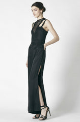 A modern twist on a classic style cropped pant, featuring slight dropped crotch, crossover front panel, hidden side zip and back pockets.